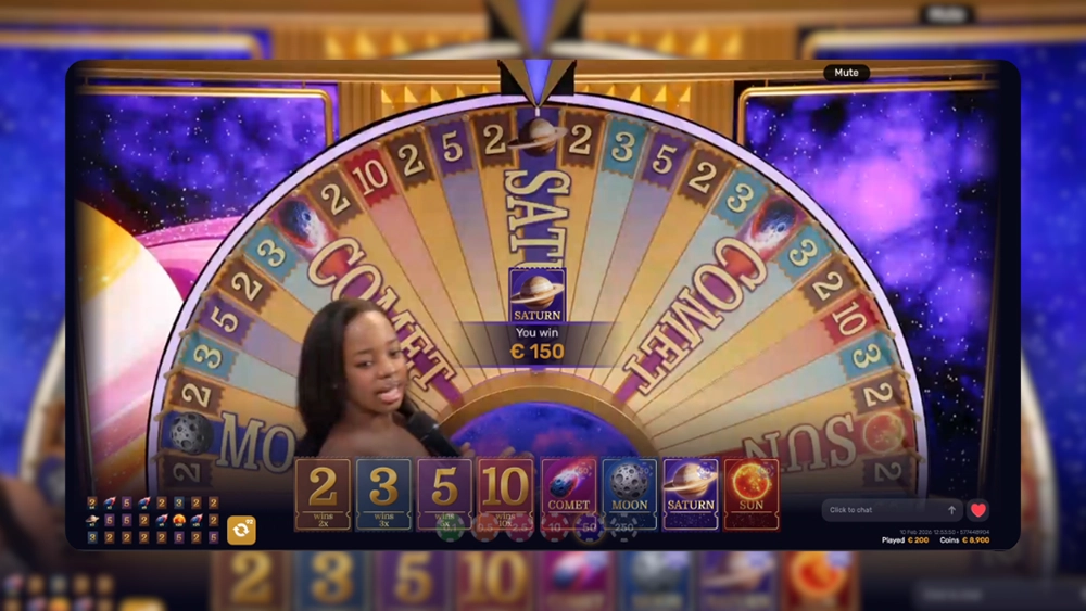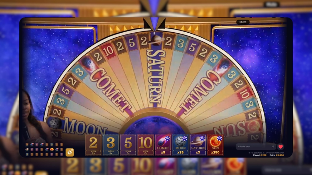 In terms of format, this variant is similar to popular games such as Dream Catcher and Crazy Time. However, unlike these variants, there are no bonus rounds here. The wheel consists of 54 segments. Players can place bets on eight outcomes, including fixed numbers and planet symbols with dynamic multipliers. All multipliers are assigned after betting closes and the wheel stops spinning.