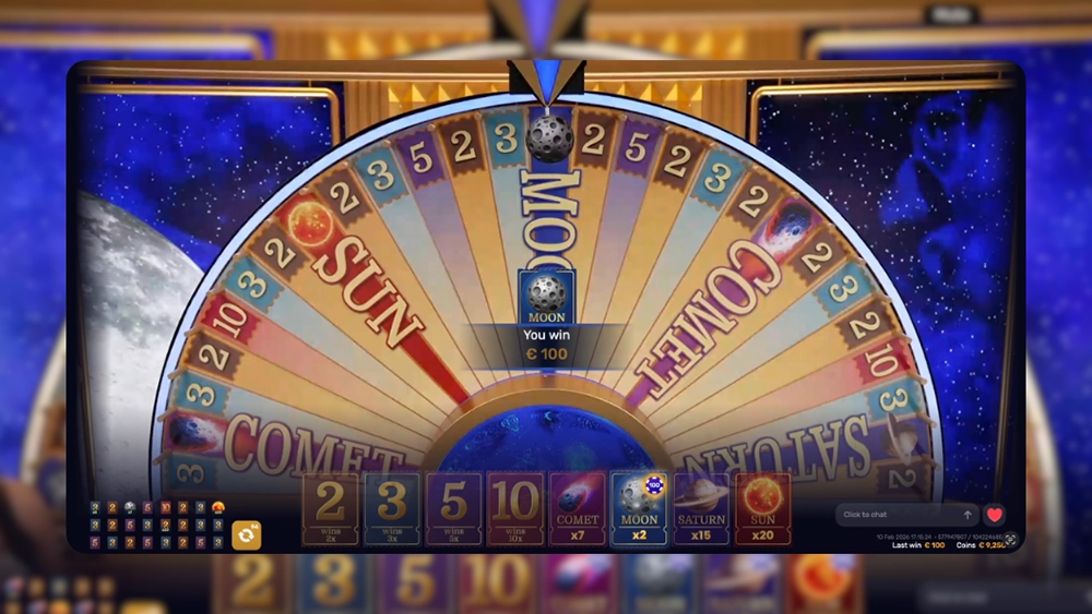 • The segments with celestial bodies have a base multiplier of 1x, but additional multipliers generated during the wheel spin are always applied to them.