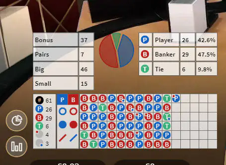 There is a good selection of Side Bets and the Road Maps are comprehensive, including at a glance game stats that give you a feel of the table and how the shoe is playing as you take your seat.