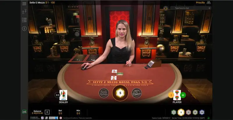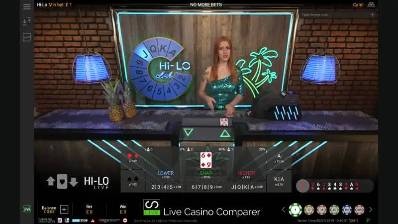 You can play Blackjack, Roulette, Baccarat, Dragon/Tiger and Hi-Lo.