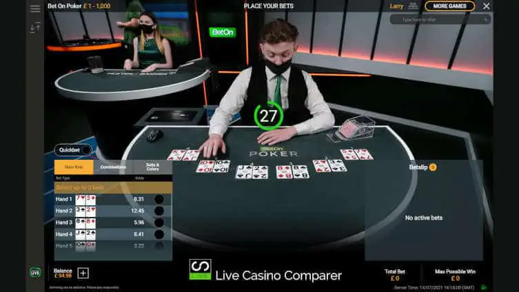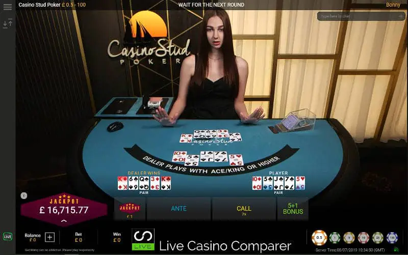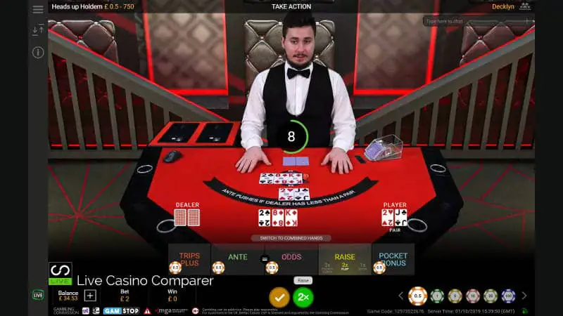Live Casino Hold'em is the same game you'll find at other live casino providers, such as Evolution or Ezugi.