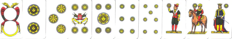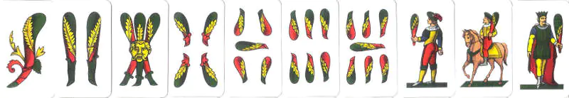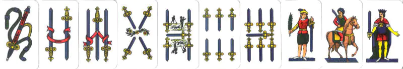 Each card suit contains ten cards, giving a total of forty cards in the deck.