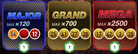 The maximum possible payouts for the Bonus rounds are Major - 120:1, Grand - 700:1 and Mega - 2500:1.