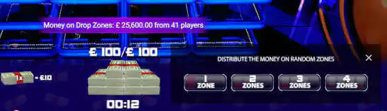 To try and win the whole of the balance you have been given requires you to bet on just one zone for each money drop.