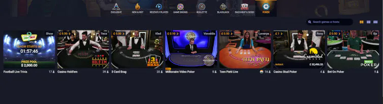 If you don't know Poker, this is a really good starter game. You'll quickly pick up the hand values, which will enable you to progress to other live dealer poker games.
