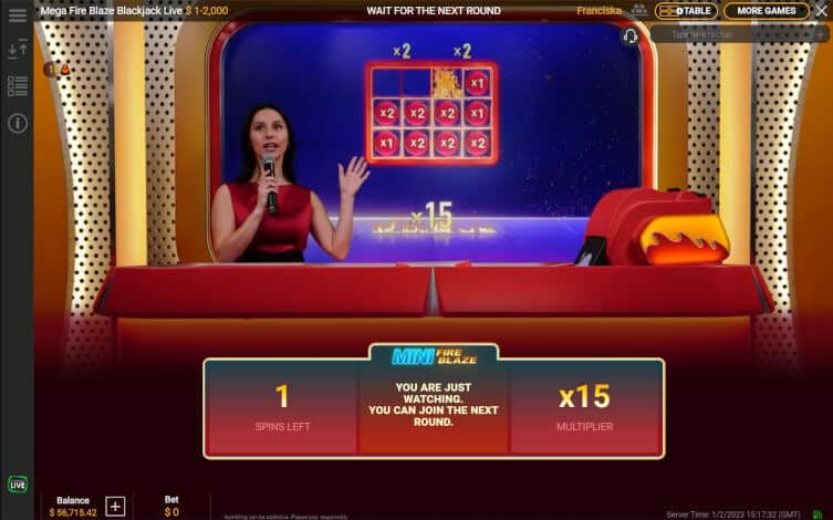 Note: you have to play the Blackjack hand to be able to bet on the Fire Blaze Bonus round.