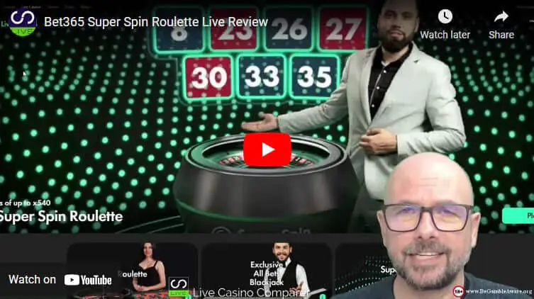 If you prefer, here's a video of me playing Super Spin Roulette at Bet365. I explain how to play the game, and demonstrate some of the strategies when playing.