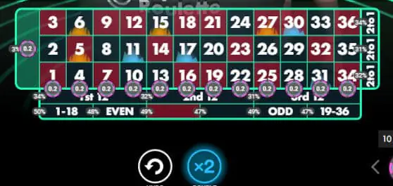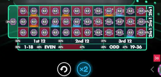 Note: The projected win multipliers for each game round are displayed below the wheel. It's just another way of expressing the multiplier. For example, if the Total Multiplier is 200x, the Split bet multiplier would be 100x and so on for each inside bet type.