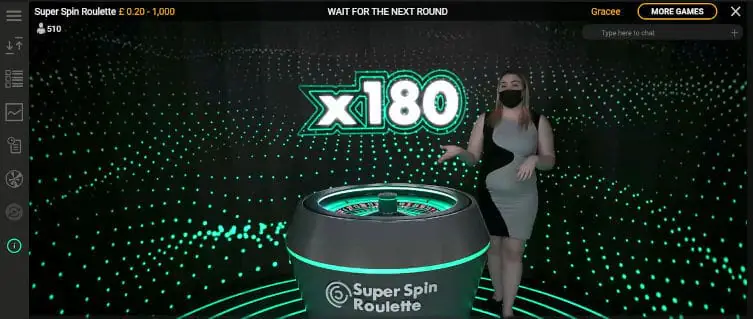 The closest you get to Super Spin in another game is Mega Fire Blaze Live Roulette, which has taken live dealer roulette with multipliers to another level.
