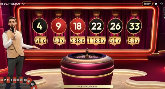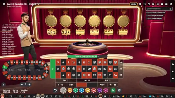 Lucky 6 Roulette is a live dealer roulette game that gives six numbers payout multipliers of between 50x and 2088x per game round.
