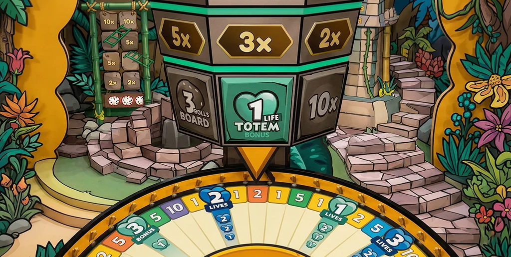 The Snake Totum consists of unlimited dice rolls, but you enter with either one life or two, which is dependent on the segment result on the big wheel.