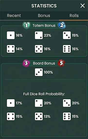 The Rolls statistics indicate how often each of the dice totals come in for each of the bonus rounds.