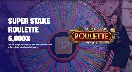 Super Stake Roulette is a live dealer game of European Roulette with Multipliers ranging from 50x to 1000x. There is also a bonus round that can pay up to 5000x