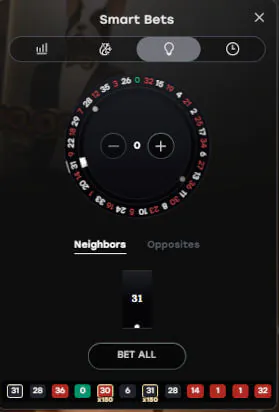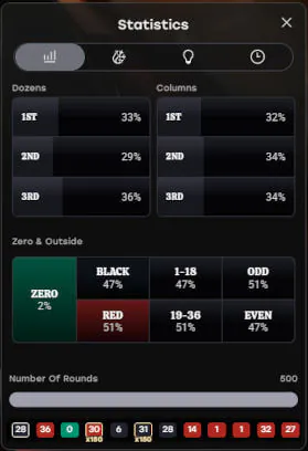 - Using the statistic panel, you can click on a section, number or selection of previous results numbers to place your bets.