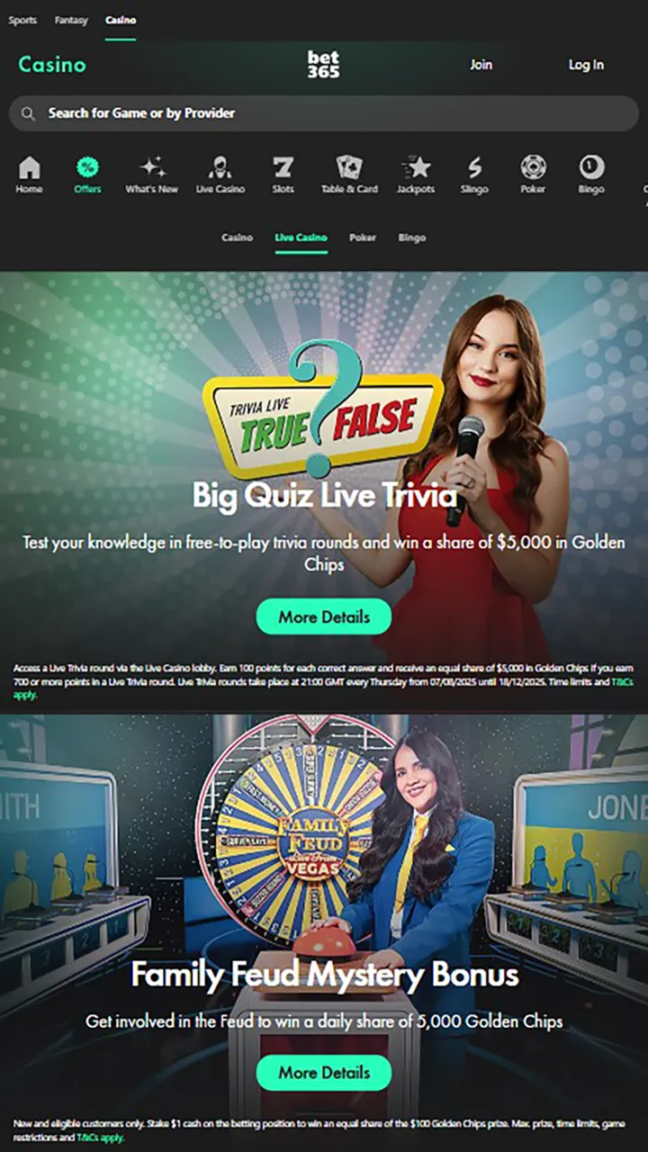 Does Bet365 have a live casino?