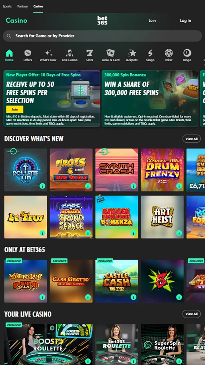 For anyone who likes to play Playtech games or live games in general without a specific developer preference, Bet365 is the place to be.