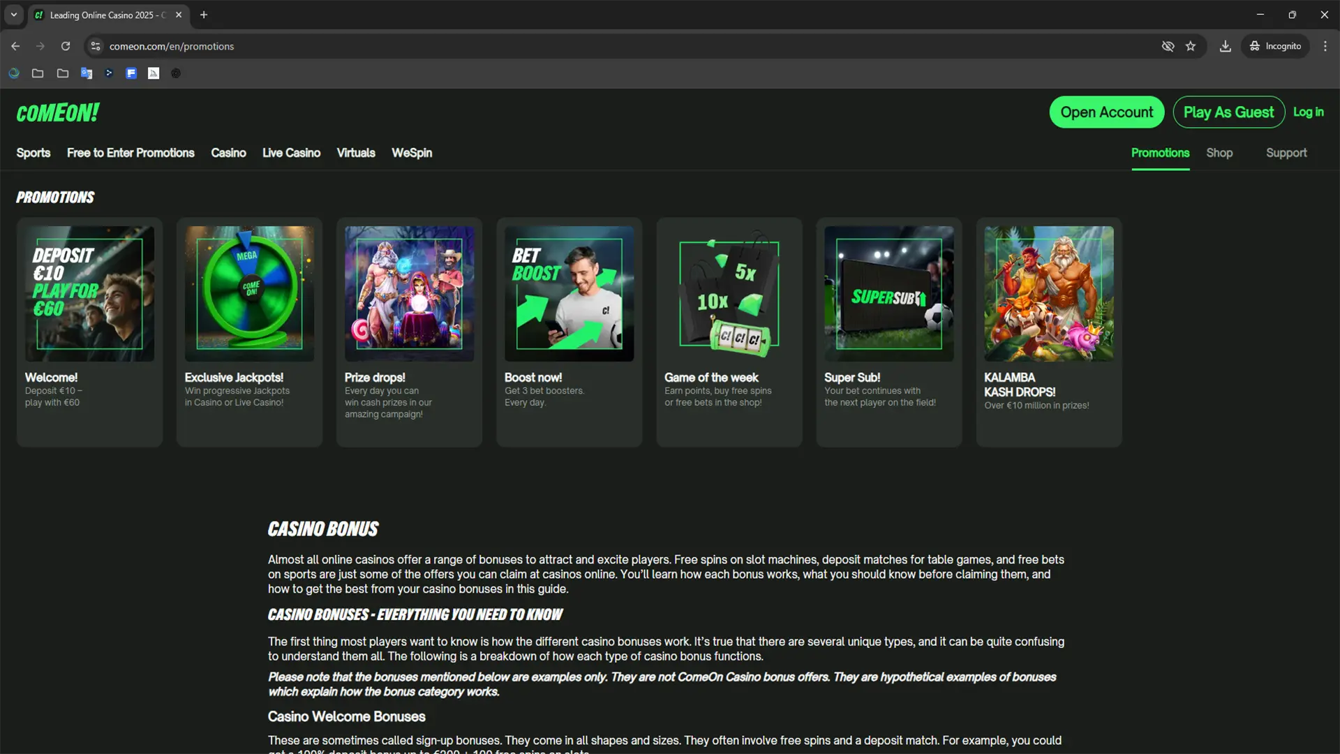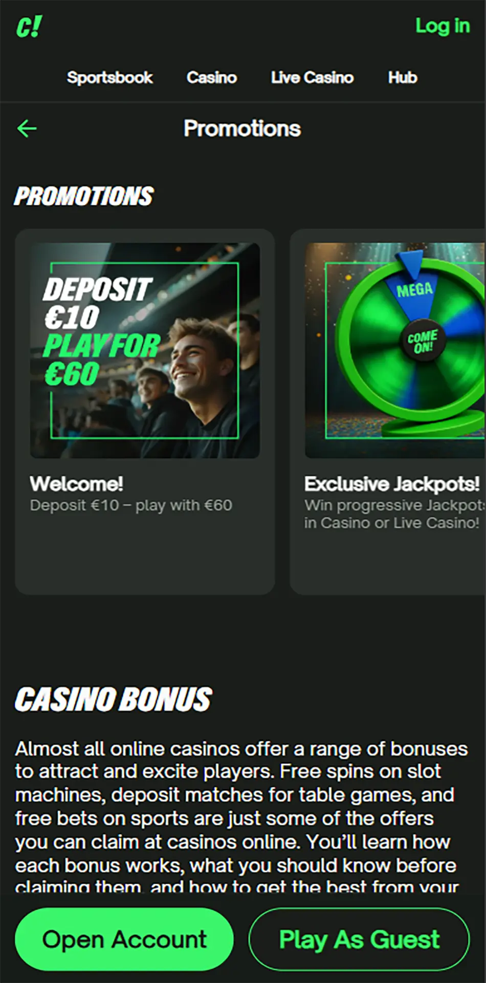 ComeOn Casino is an award-winning online casino and sportsbook launched in 2008, operated by Co-Gaming Limited under licenses from the Malta Gaming Authority and the Swedish Gambling Authority. The platform offers a wide selection of slots, table games, and a high-quality live casino powered by Evolution, Pragmatic Play, and OnAir Entertainment. Known for its intuitive design, fast withdrawals, and strong focus on responsible gaming, ComeOn provides a seamless experience across desktop and mobile.