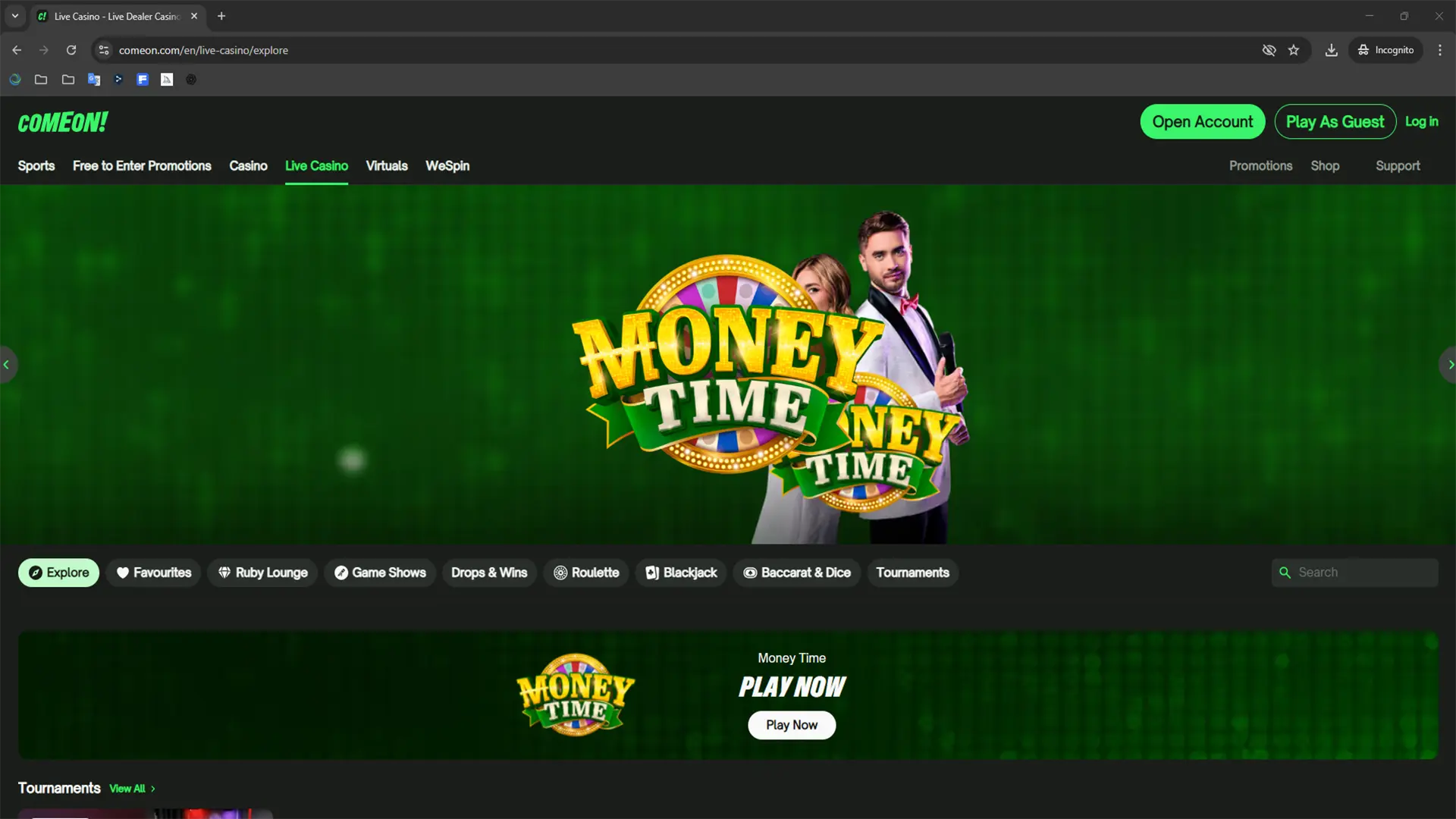 ComeOn has had Evolution games for a long time. They have all the usual games, including the entertainment games, .