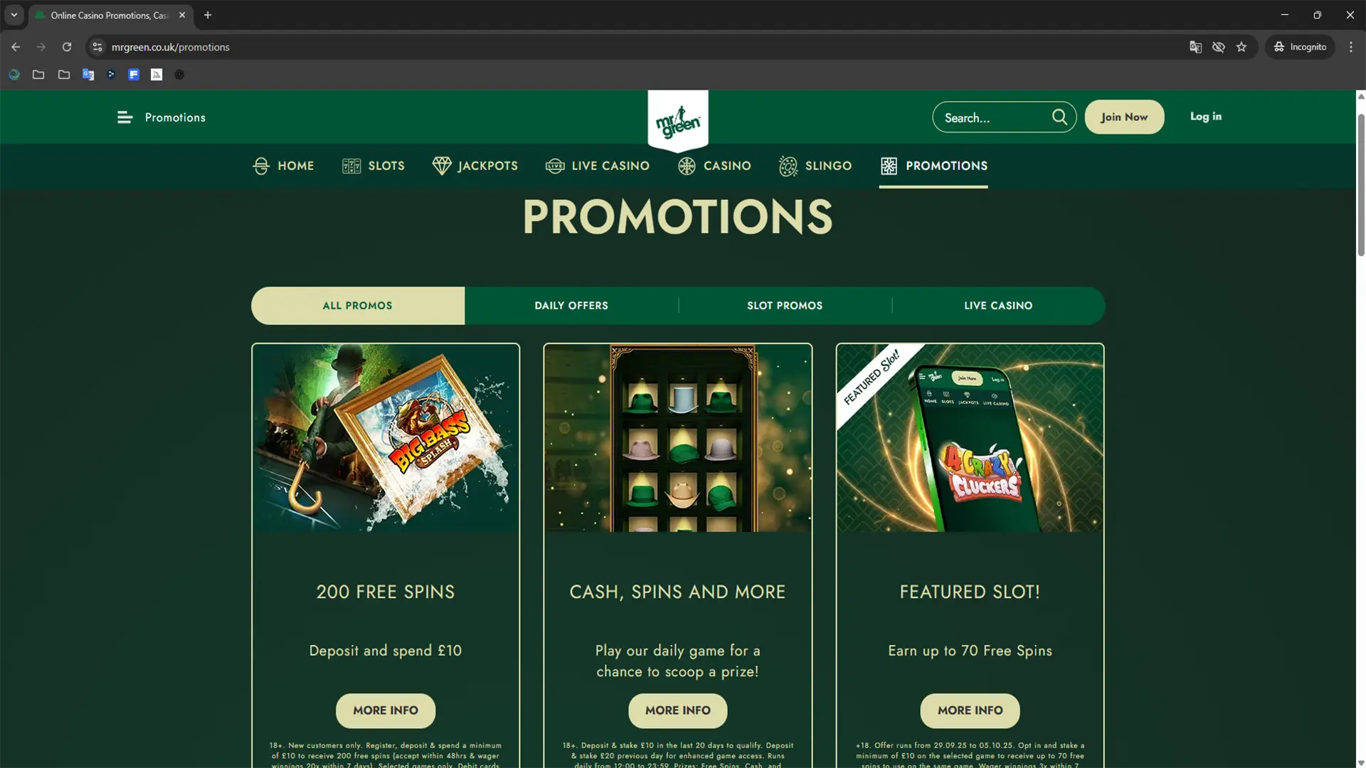 Mr Green really looks after their Live Casino players when it comes to promotions and bonuses.