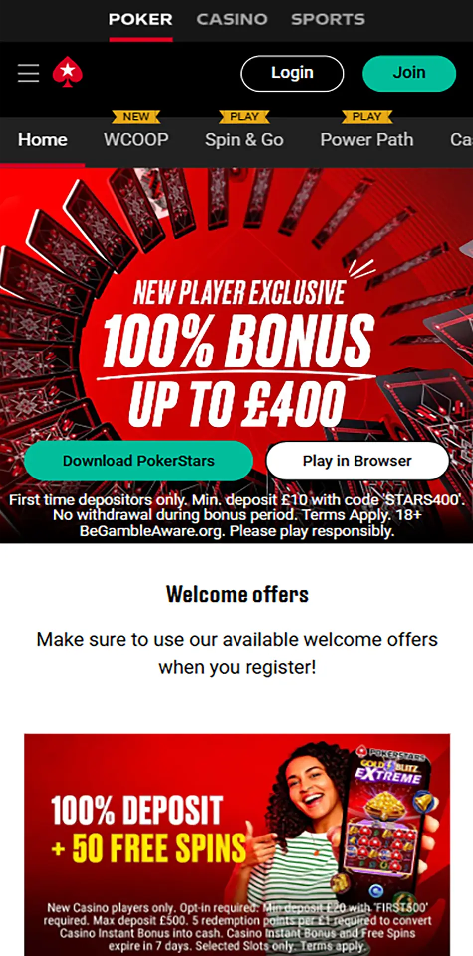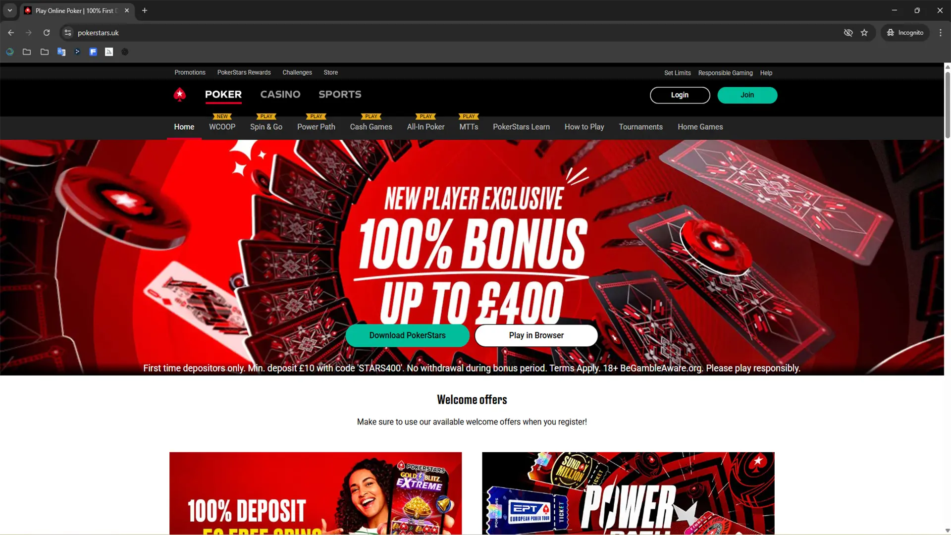 This downloads quickly and gives you access to the whole Pokerstars casino. You’ll need to log in again, a bit of a faff I know.