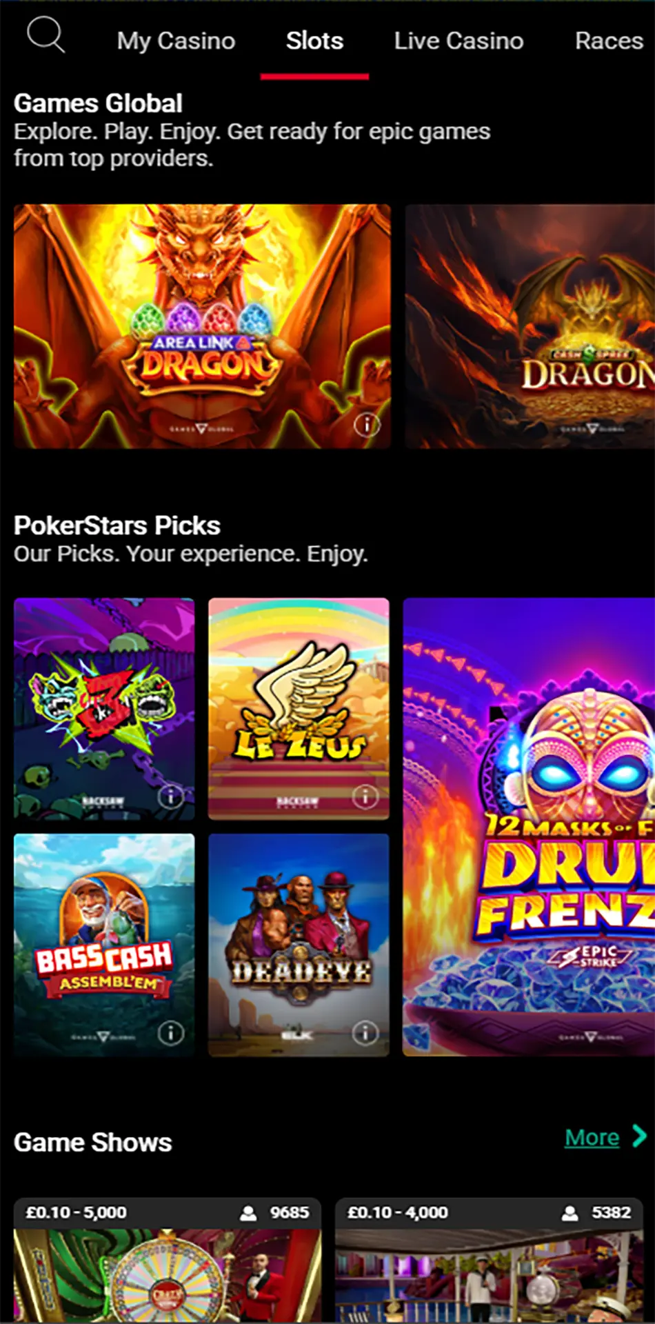 PokerStars Casino, launched in 2015, is part of the globally renowned Flutter Entertainment group. Evolving from the legendary PokerStars brand, it offers a world-class selection of slots, table games, and live dealer experiences, blending cutting-edge technology with a reputation for fairness and innovation.
