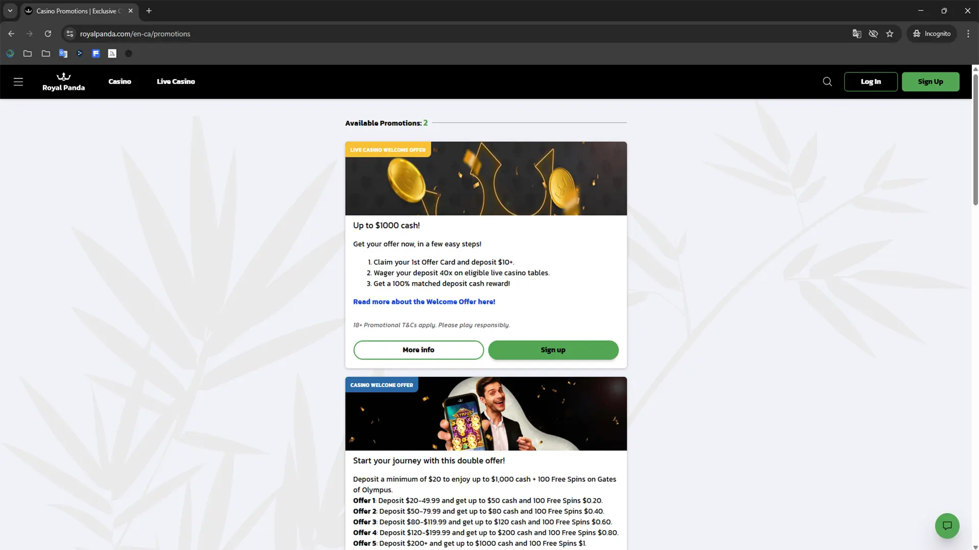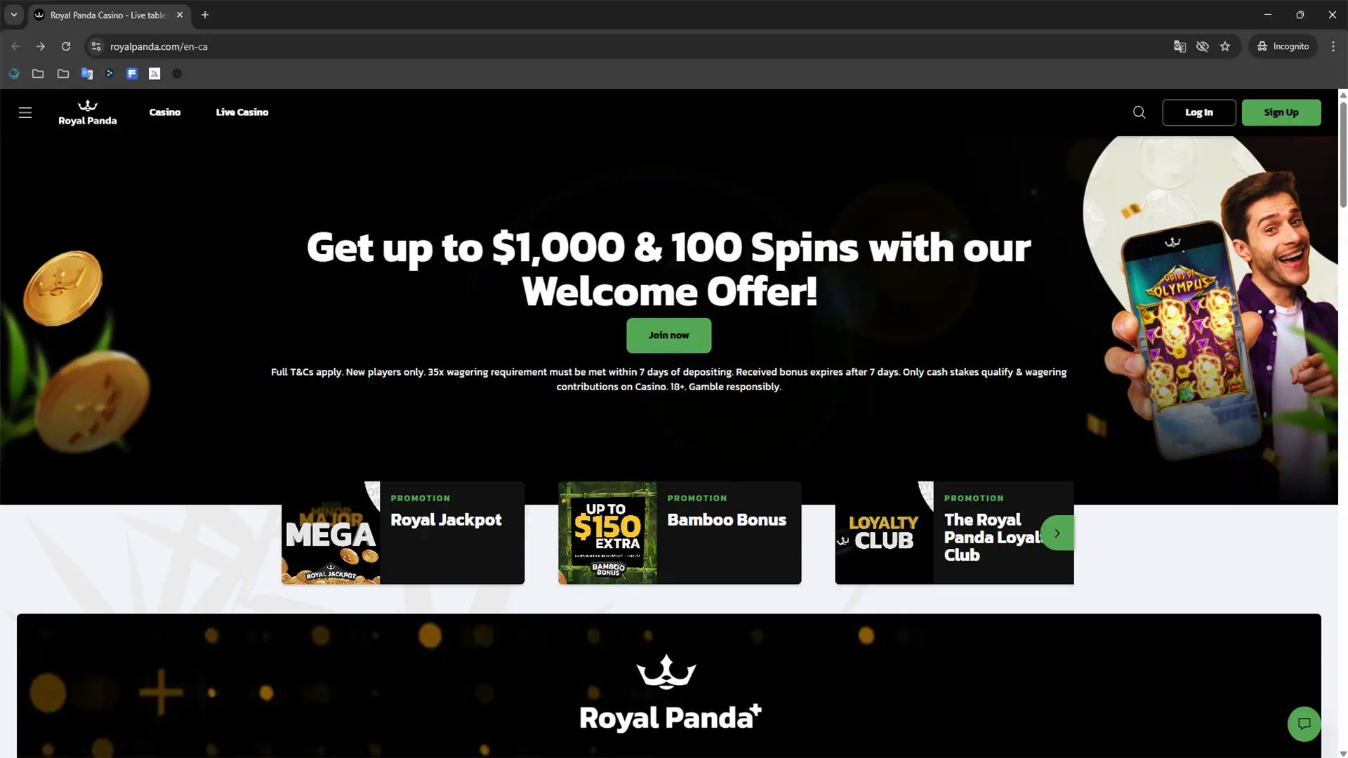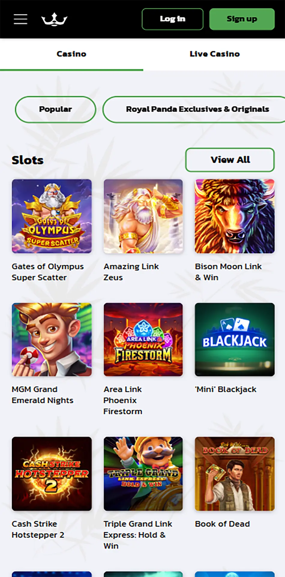 Royal Panda Casino, founded in 2014, is a stylish and reputable online casino known for its playful design and premium gaming experience. Operating under the LeoVegas Gaming Network, it offers a rich collection of slots, table games, and live dealer options, combining fun, reliability, and user-friendly gameplay for players around the world.