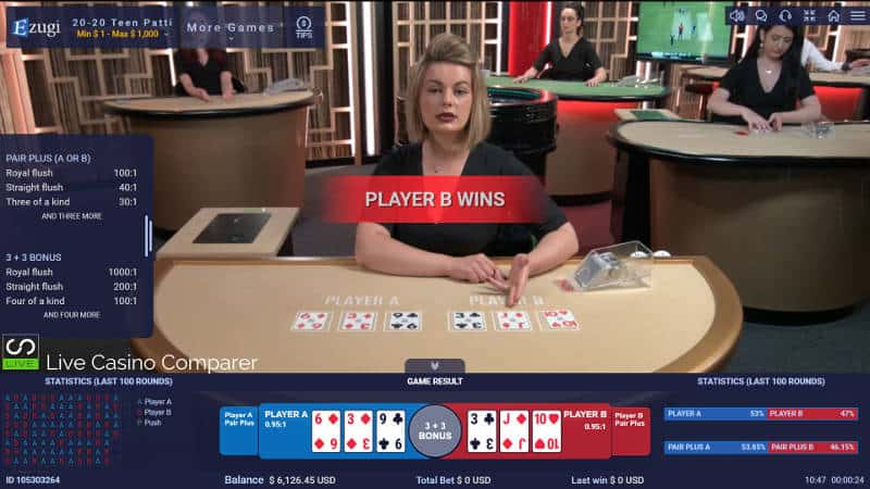 Ezugi has an eclectic selection of live games. You’ll find the regulars and also some localised games targetting Indian players.