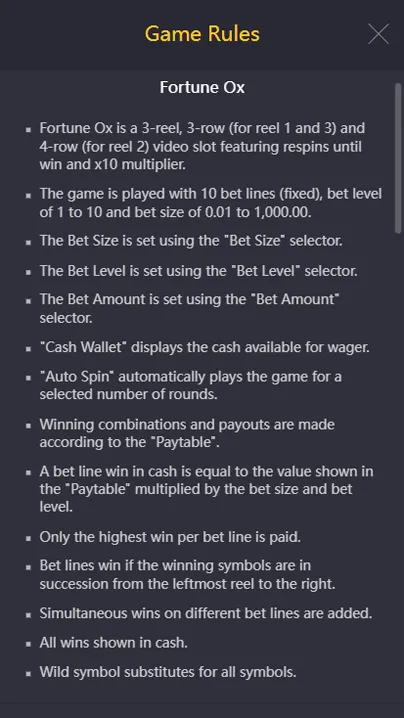 • Min & Max Bet at Fortune Ox Casino Slot