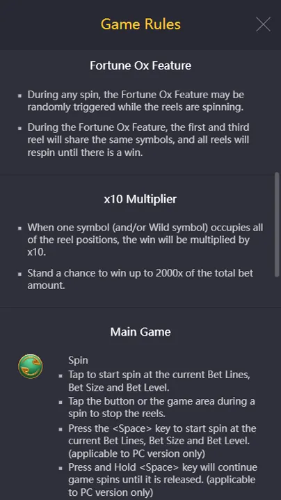 • If you attach the game to any cross-slot promos, make sure turnover requirements and max-bet rules are compatible with your preferred Fortune Ox stake size.