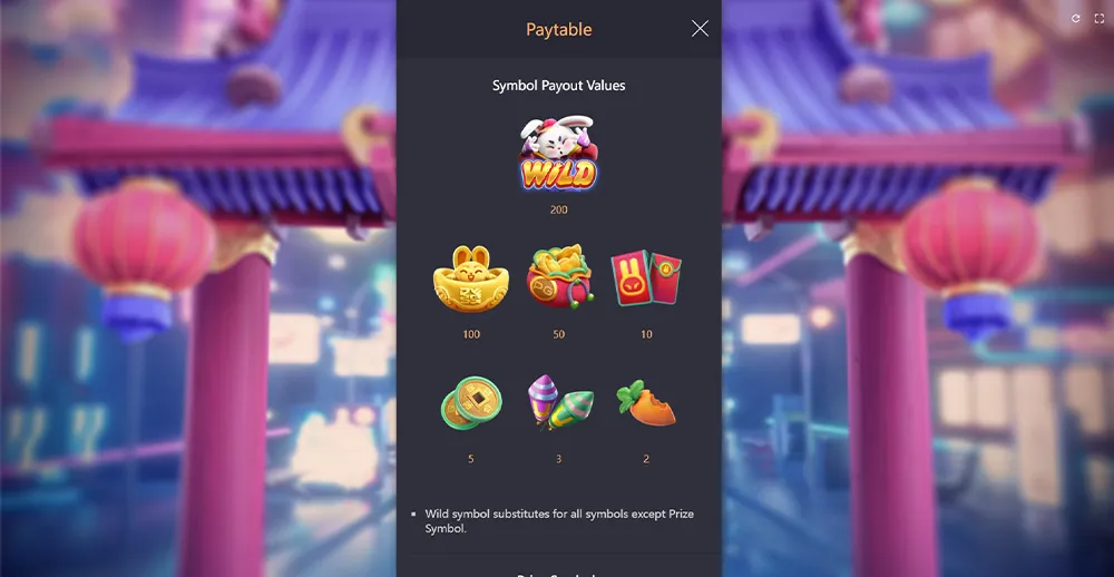 The casino Fortune Rabbit game uses special symbols known as “Prize Symbols,” which function differently from regular symbols. These symbols don’t pay out wins on traditional paylines. Instead, they reward players when 5 or more Prize Symbols appear anywhere on the reels. The numerical values displayed on the Prize Symbols represent your winnings, and all values are added together to calculate the total payout. This unique mechanic adds an extra layer of excitement to the gameplay.
