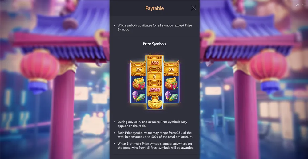 To get a payout from Prize Symbols in Fortune Rabbit, you need to land at least 5 of them anywhere on the reels.
