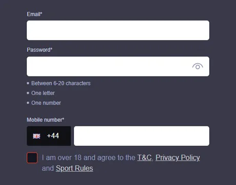 During the initial step, you must provide your email address and create a secure password. Make sure to memorise these details, as they will act as your standard 21Bets login moving forward. Ensure your password is between 6 and 20 characters, containing at least one letter and one number. Input your mobile number, tick the box confirming you are over 18, and accept the terms before clicking ‘Register’.