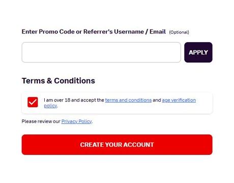 | Fast Registration | Step-by-step signup with age verification and promo code entry |