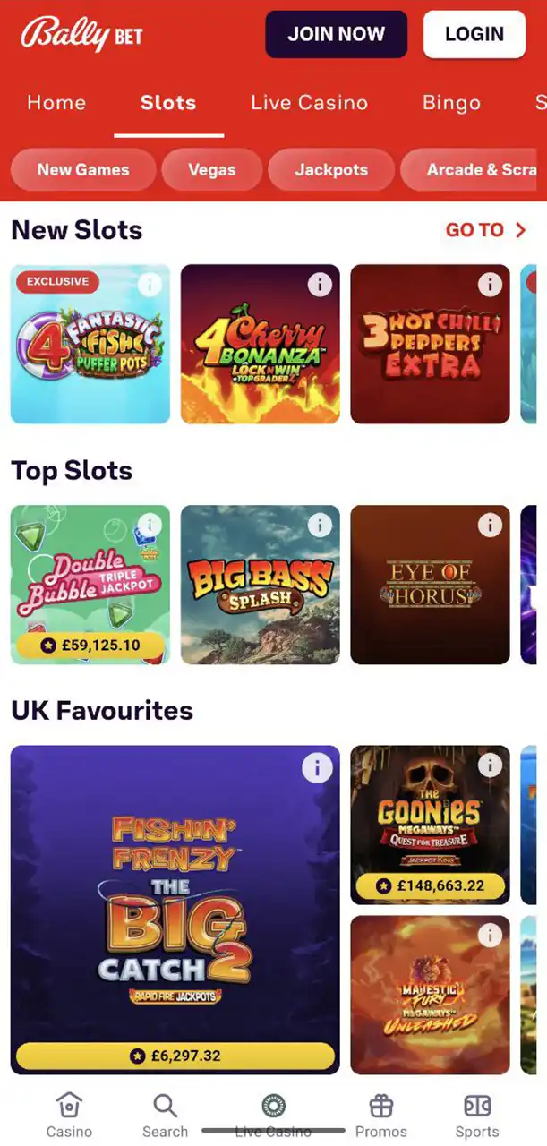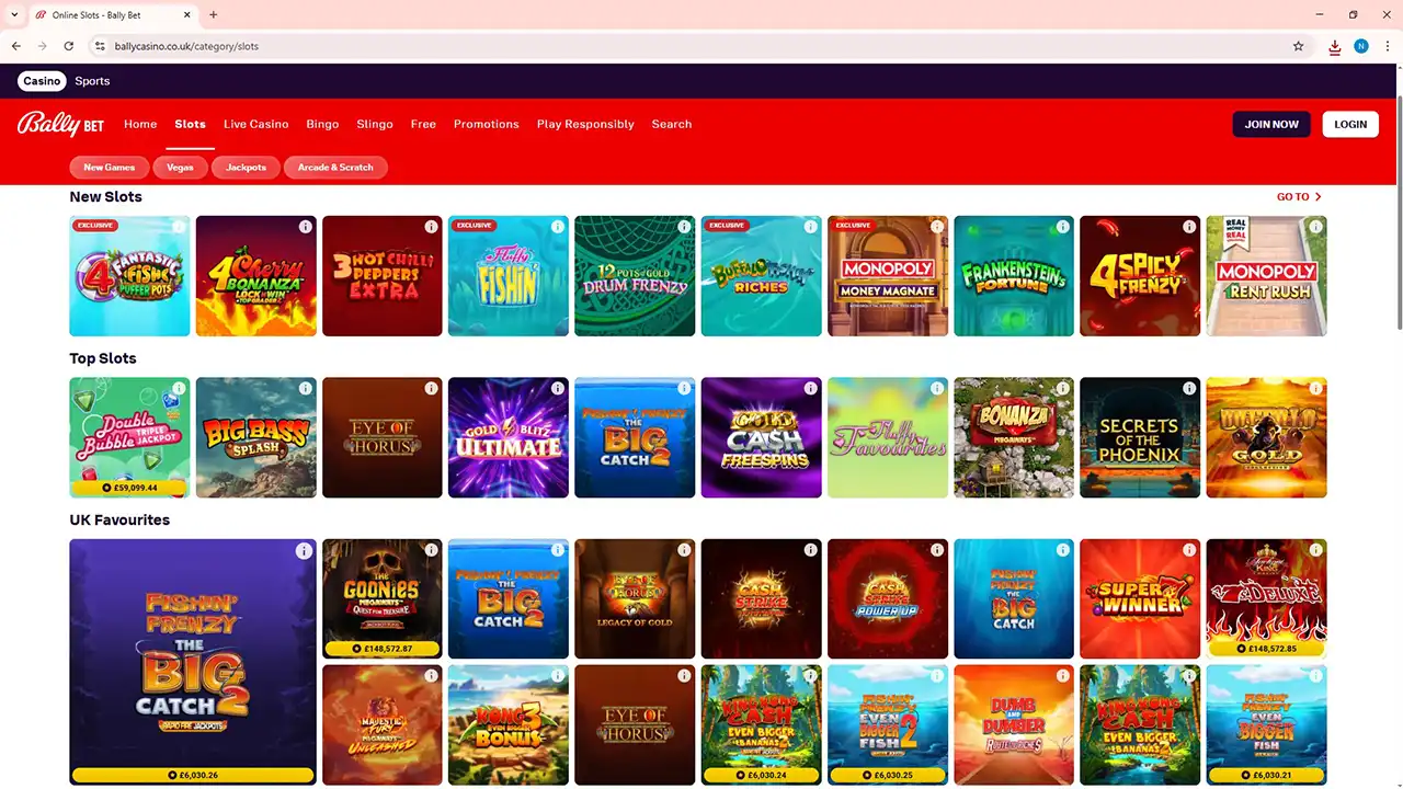 The online slots selection at Bally Casino is packed with variety, colour, and big-win potential. Players can explore everything from modern video slots and Megaways titles to feature-heavy games with free spins, bonus rounds, and multipliers. Popular themes include fishing, mythology, adventure, and classic fruit-style slots, ensuring there’s something for every taste.