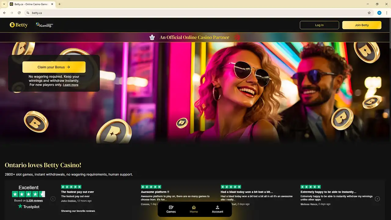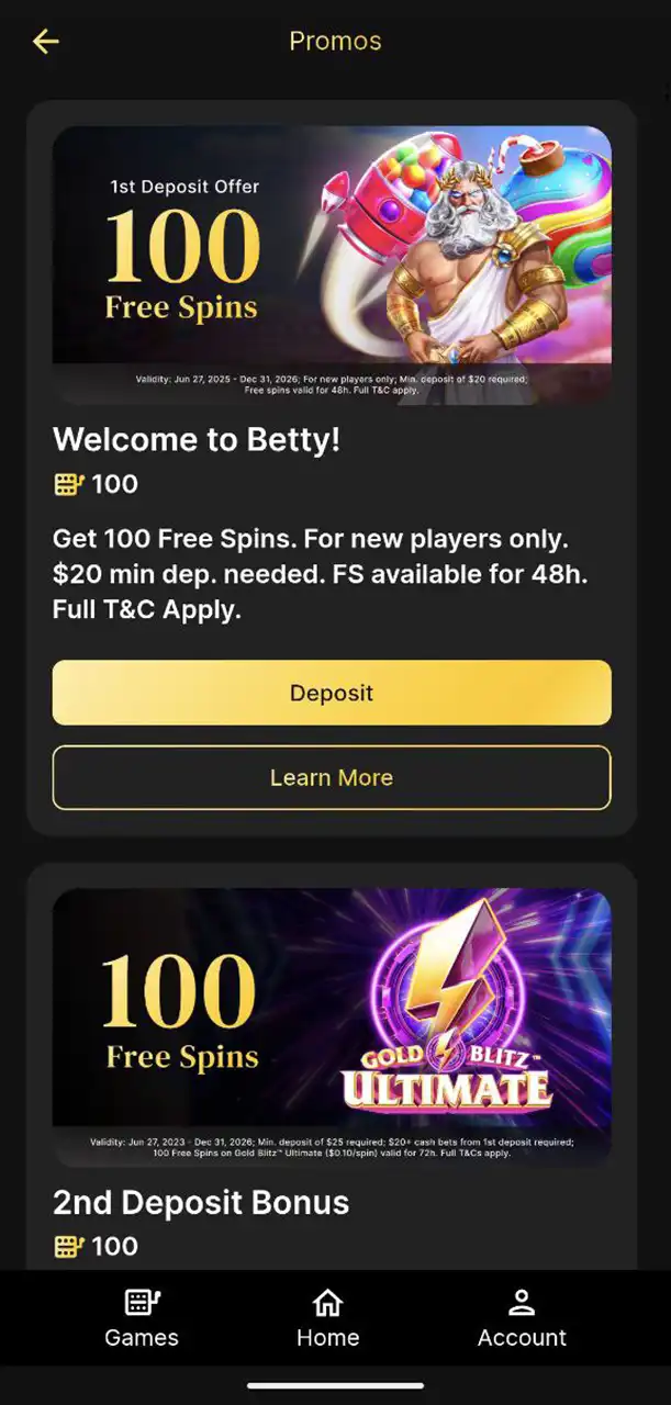Available in your region!Betty Casino is a modern online casino offering a wide selection of slots, live dealer games, and fast crypto-friendly payments on an international platform.