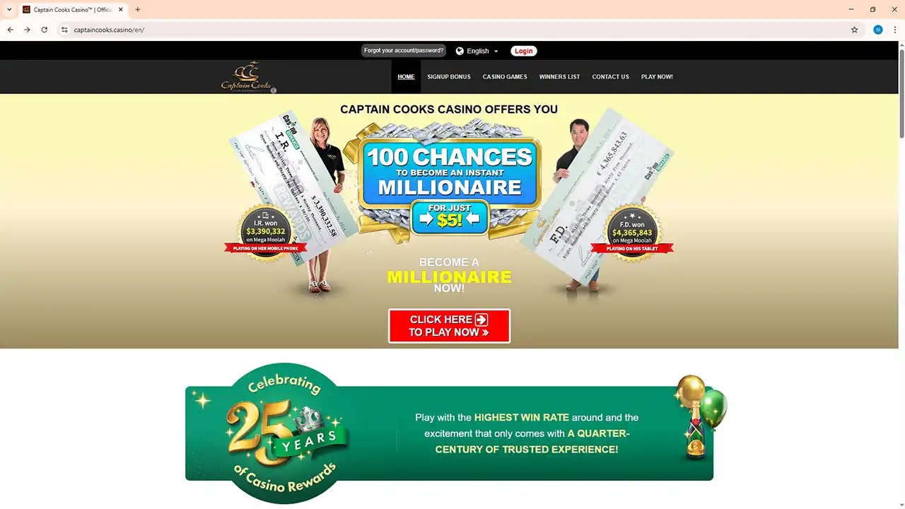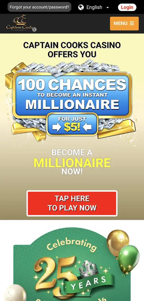 Captain Cooks Casino is a U.S.-focused online casino featuring classic RTG slots, table games, generous bonus offers, and support for Bitcoin and traditional payment methods.