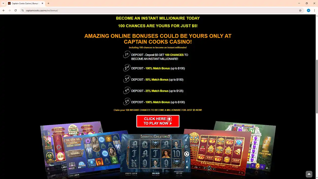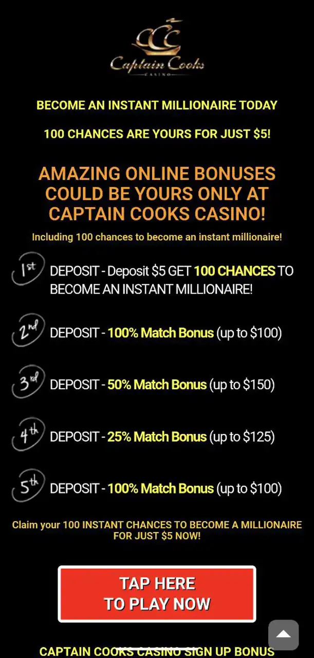 Captain Cooks Casino is not open to your region. We’ve found the best secure alternatives for you instead, packed with high-value bonuses and welcome rewards.
