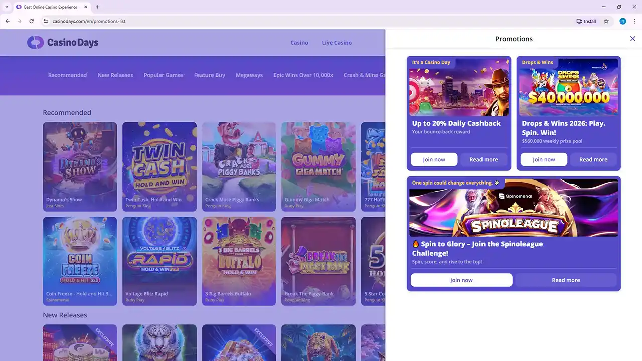 Casino Days Promotions Page