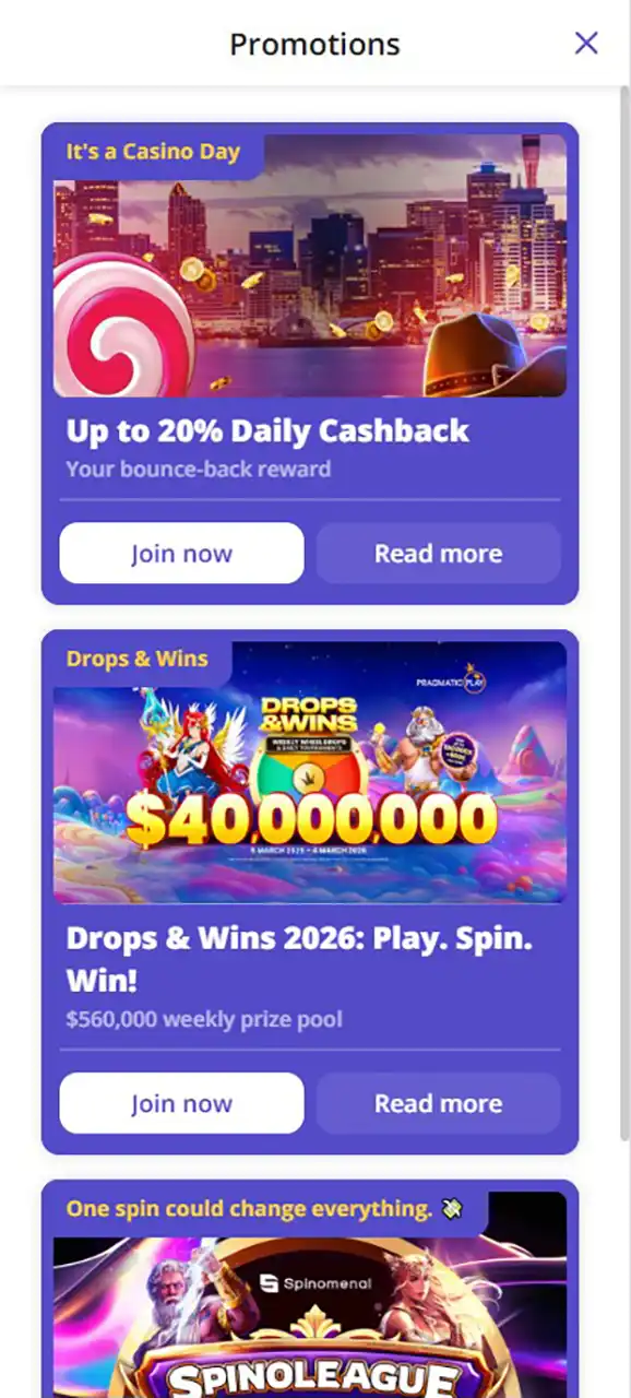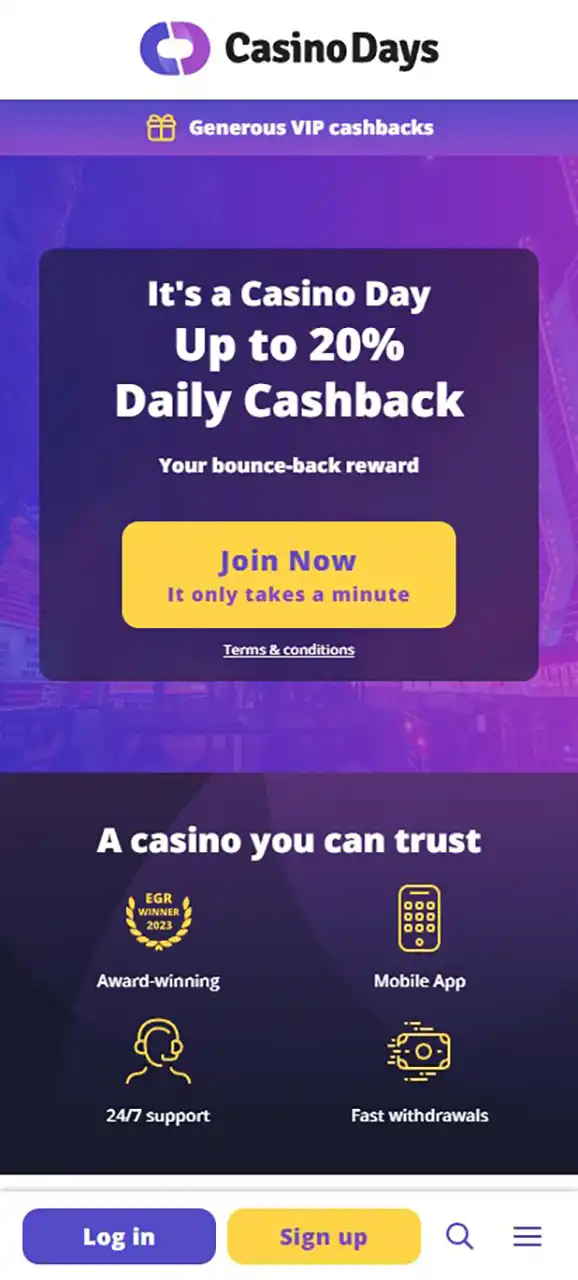 Casino Days Mobile Promotions Page