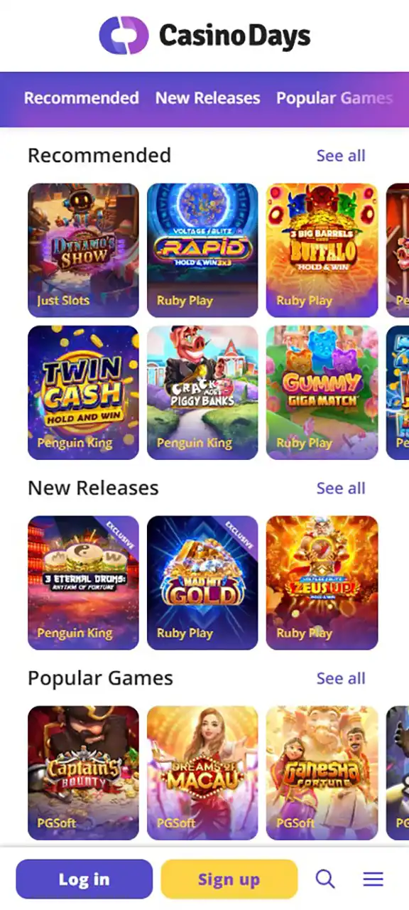Casino Days is an international online casino established in 2020 and operated by White Star B.V. under a Curacao gaming license. The platform offers a wide selection of games from leading providers, including slots, live casino, and table games.