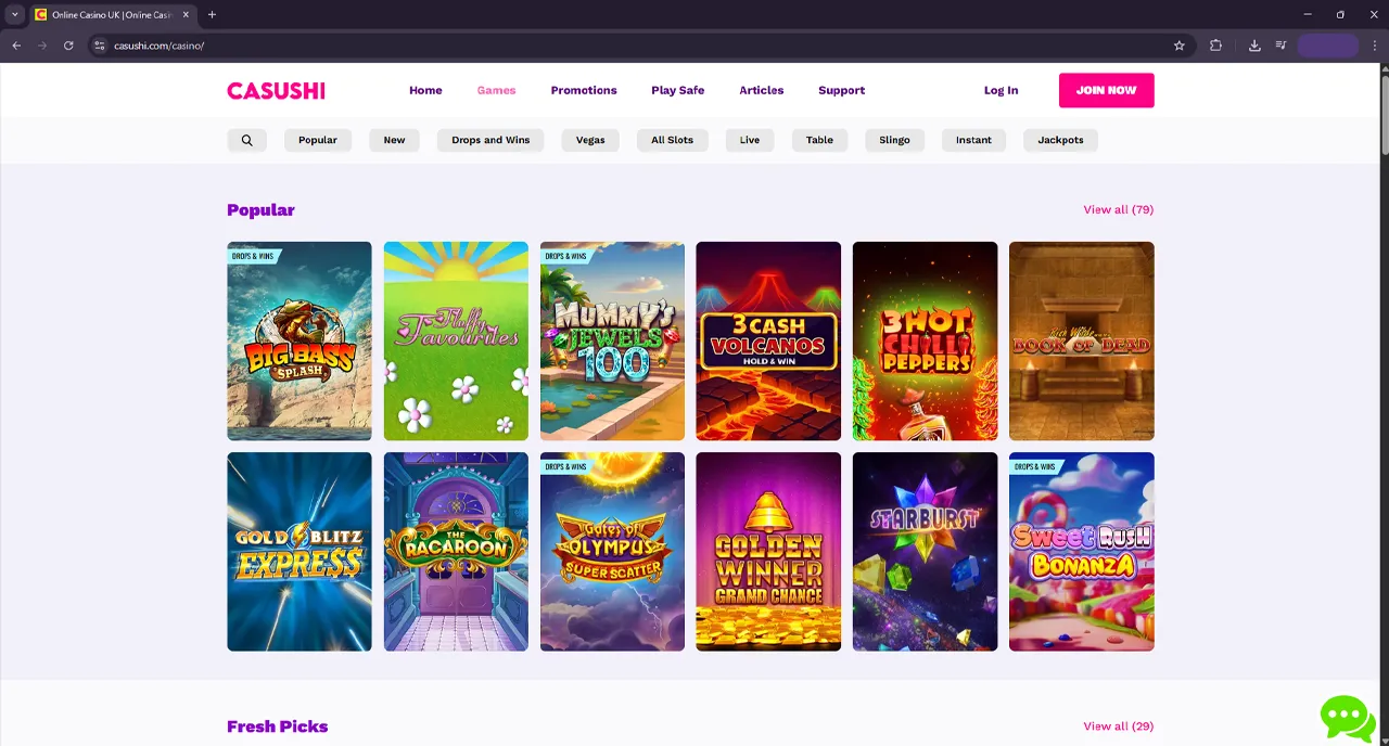 What Types of Games Does Casushi Casino Offer?