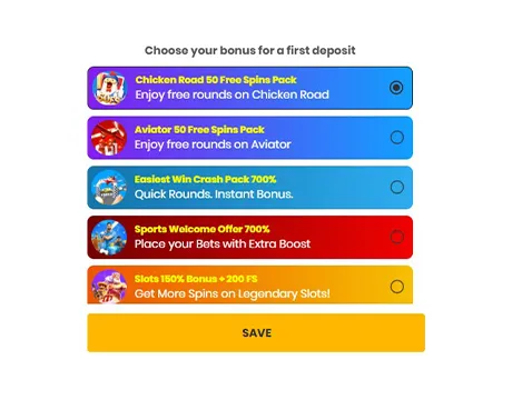 - Versatile Welcome Offers: New players are greeted with solid welcome bonus packages, offering a choice of six distinct options. This ensures that whether you prefer slots, live dealers, or crash games, there is a tailored reward available.