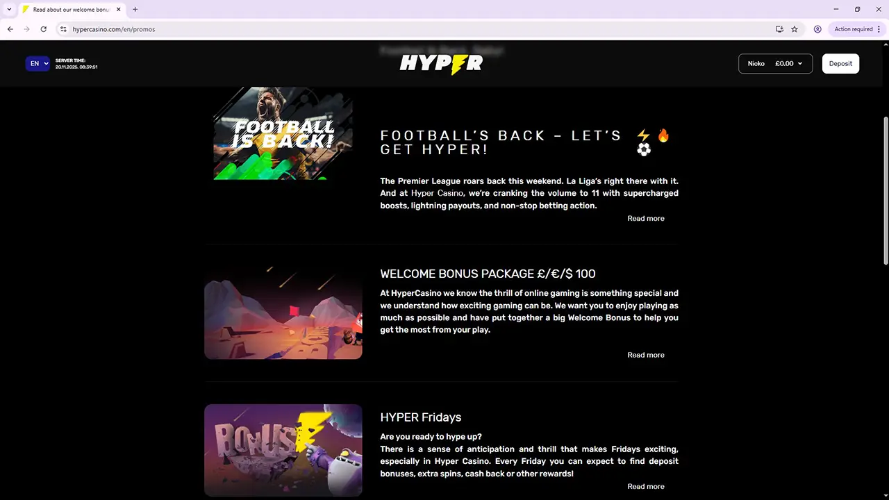 If you’re short on time and prefer quick overviews, the platform’s pros and cons below will help you make an informed decision without having to read full Hyper casino reviews. We’ve highlighted the key advantages and disadvantages so you can easily determine whether Hyper suits your betting preferences.