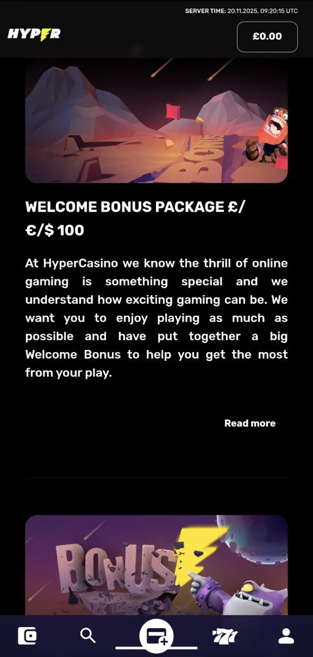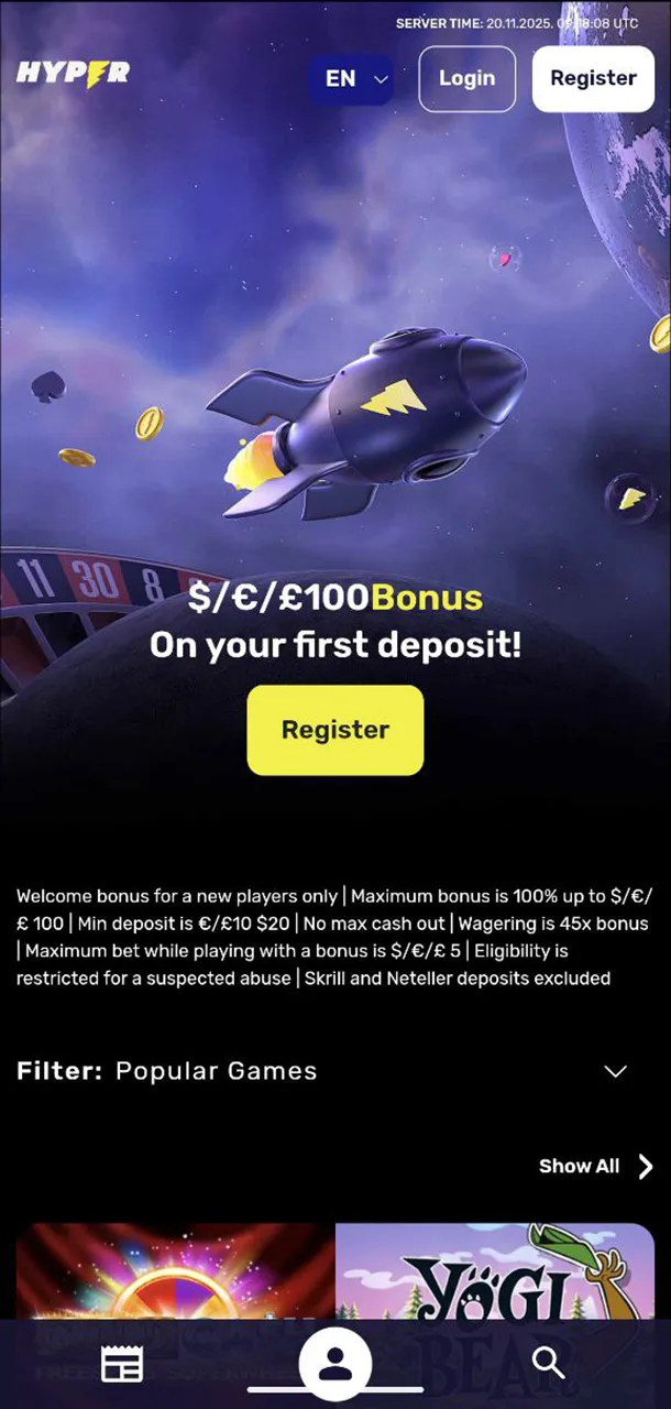 The minimum deposit at Hyper Casino is just $10. This makes the platform accessible to players of all budgets. You can start playing and enjoying your favourite games even with a small starting capital.