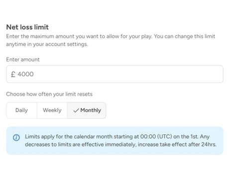 - Net loss limits that cap how much you can lose over a day, week or month, with reductions applying immediately and increases delayed.