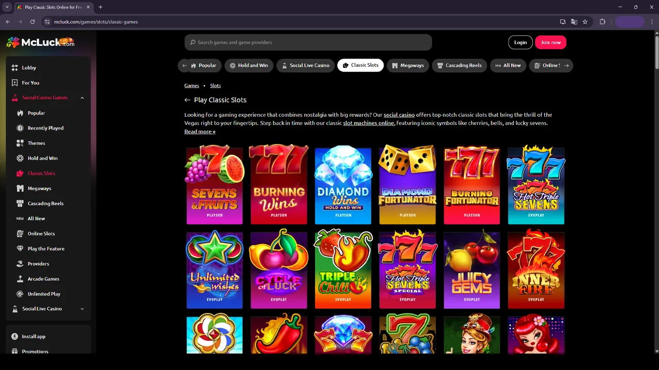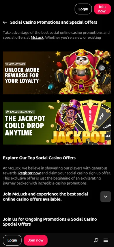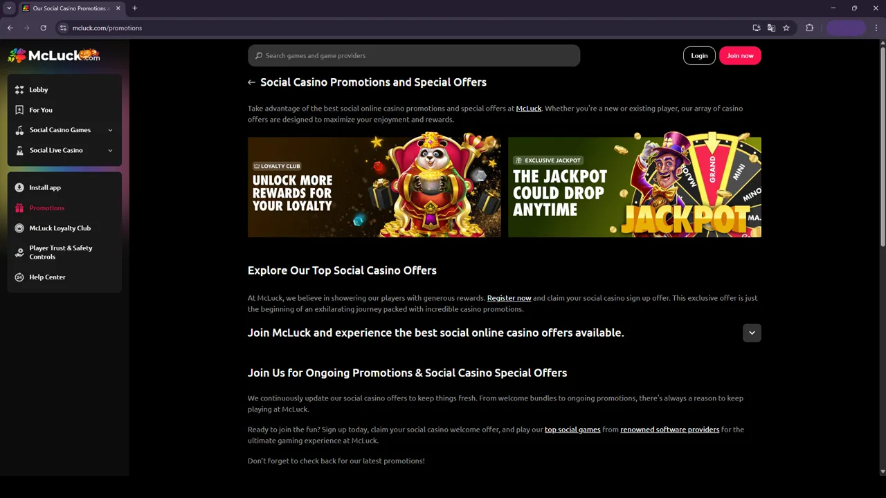 McLuck provides a wide range of casino offers – including daily login rewards and exclusive social promotions – which give players numerous opportunities to earn extra coins and enrich their online gambling experience.