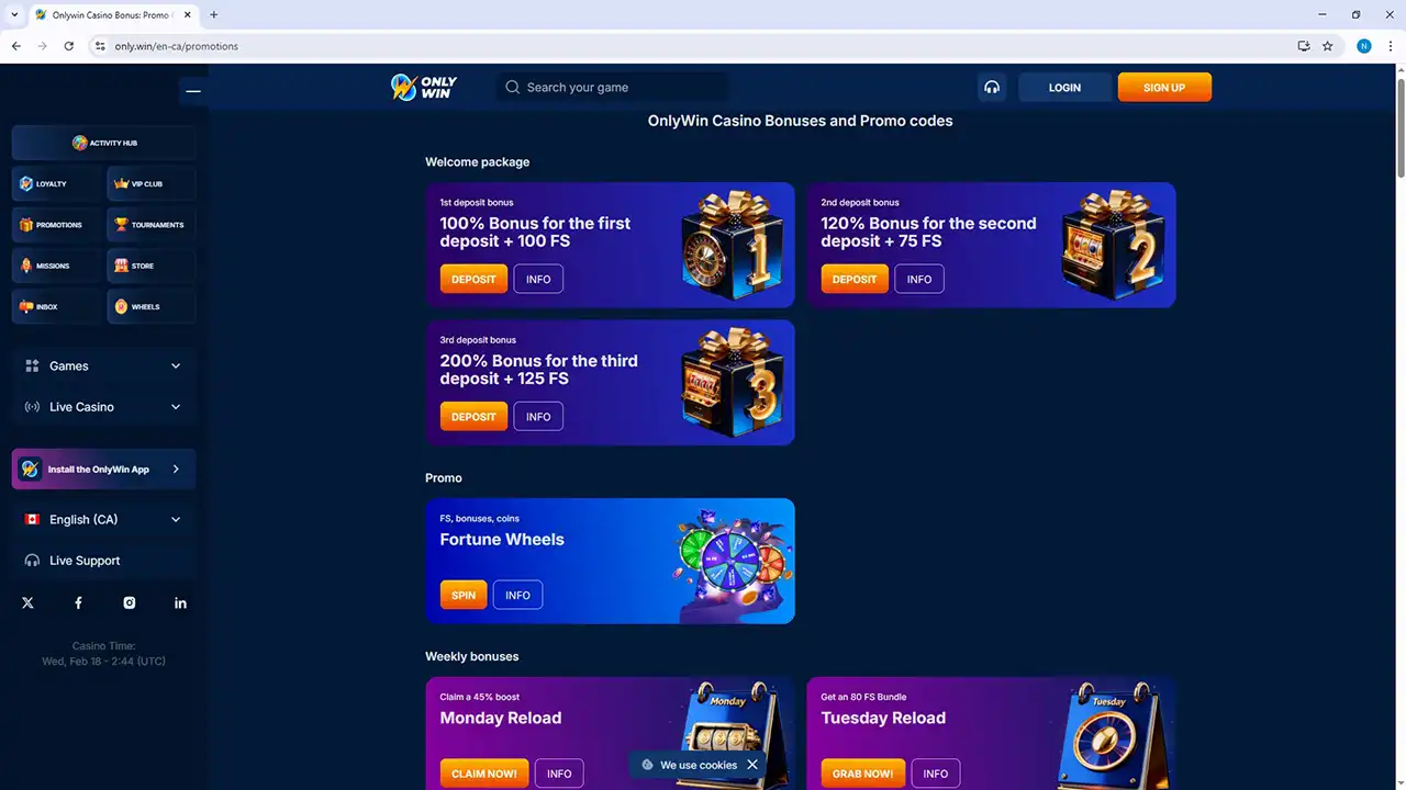 OnlyWin Casino Promotions Page