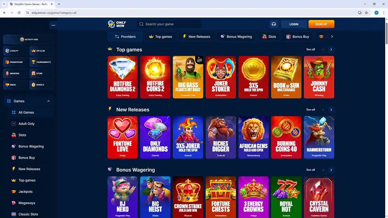 OnlyWin Casino is a straightforward online casino offering a wide selection of slots and classic table games, designed for players looking for simple gameplay and familiar casino mechanics.