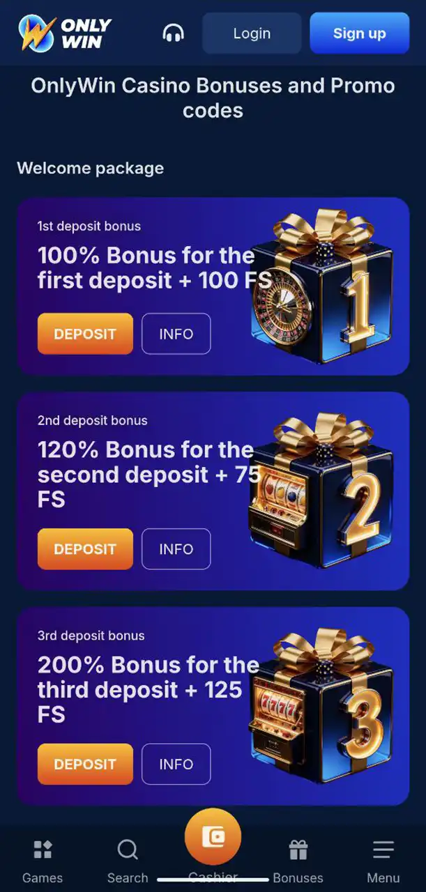 OnlyWin Casino Mobile Promotions Page