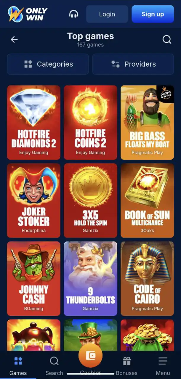 OnlyWin Casino Mobile Slots Page